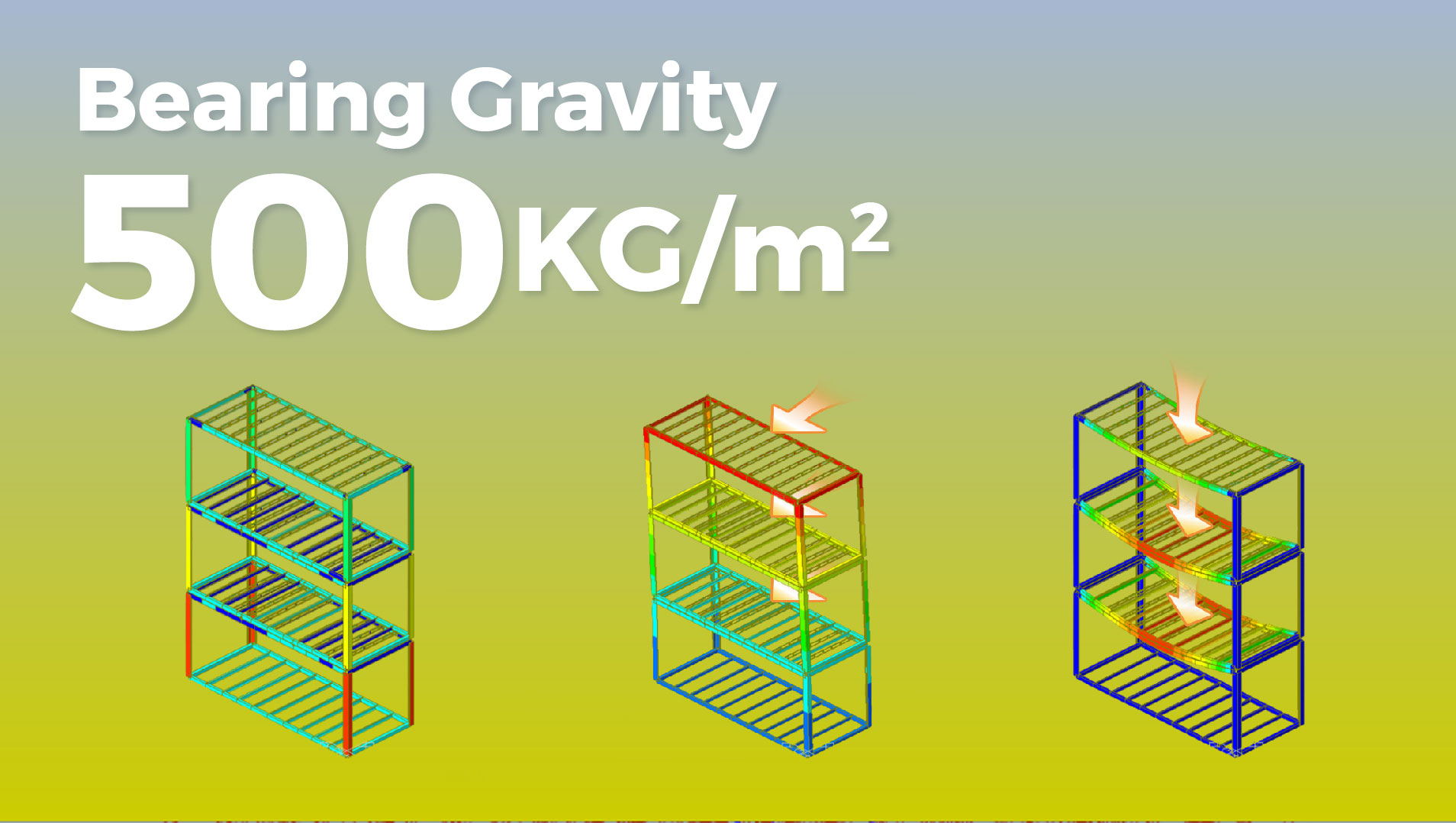 Through the structural test of the well-known testing institution by TUV, the ARK frame is stacked vertically stacked three layers, and its bearing capacity can reach 500kg/m2.